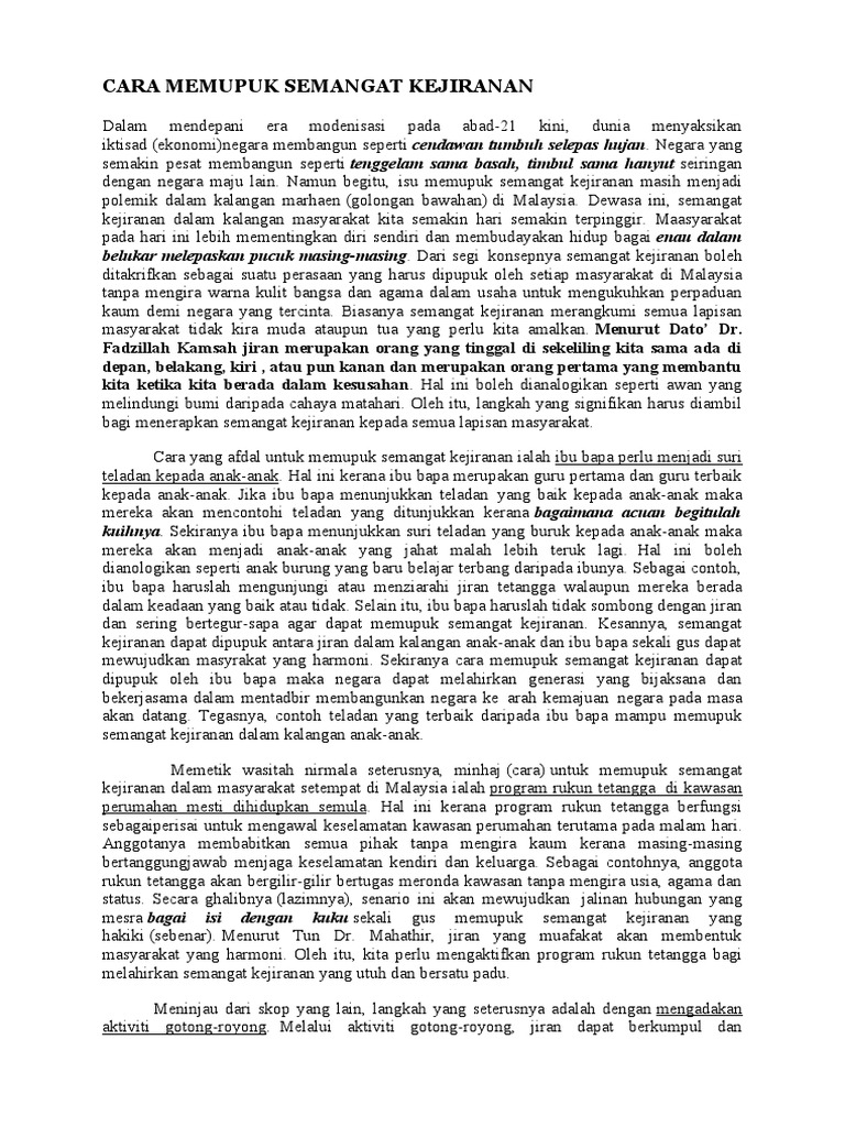 Contoh Karangan Cara Cara Mengekalkan Perpaduan Negara Tingkatan 1. Huraikan usaha-usaha yang wajar dilakukan oleh ibu bapa dalam mengekalkan semangat kejiranan di Malaysia.