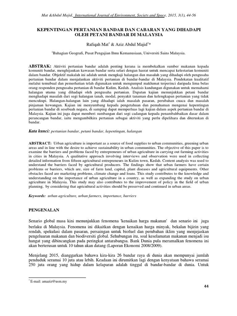 4 Ijess Rafiqah Aziz Kepentingan Pertanian Bandar Dan Cabaran Yang Dihadapi Oleh Petani Bandar Di Malaysia Pg 44 56 Pdf