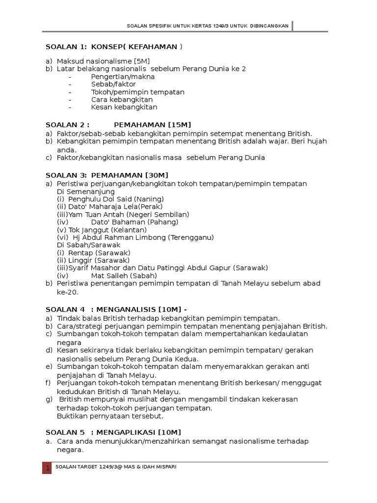 Mampukah semangat nasionalisme mengekalkan kedaulatan negara. Keseluruhannya nasionalisme bertujuan membebaskan diri daripada cengkaman kuasa asing. Kita haruslah sanggup bertolak ansur sabar dan mengawal diri demi mengelakkan pertelingkahan dan perselisihan fahan dami kesejahteraan hidup. - Taat kepada pemimpin.
